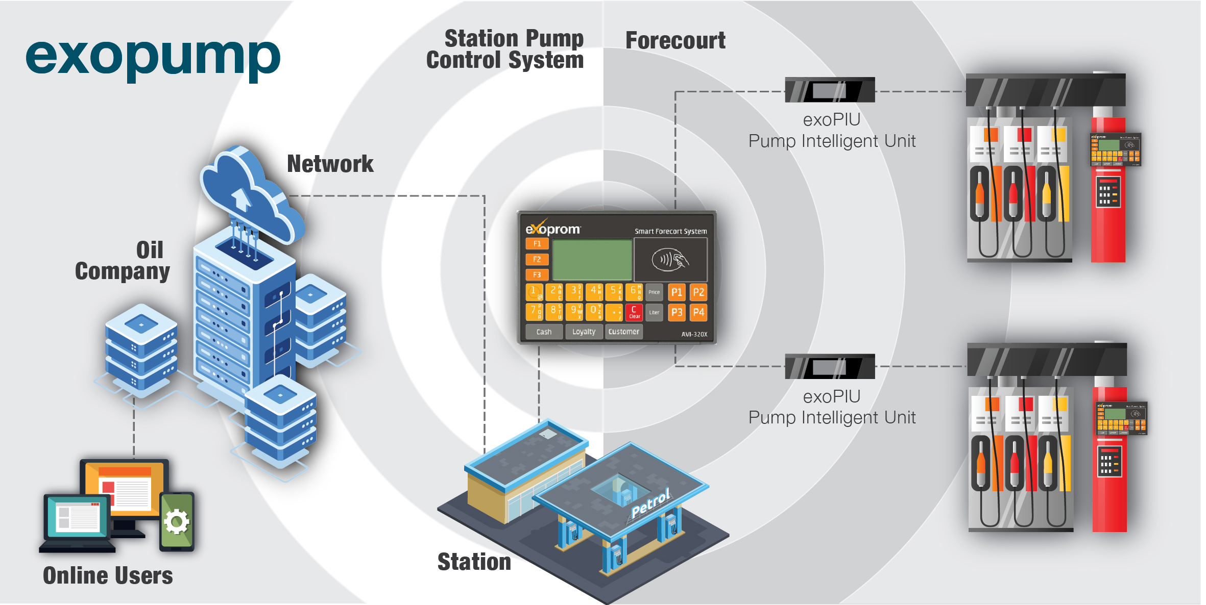 Exopump, tüm akaryakıt dispenserlerinin merkez ofisinizden otomatik olarak kontrol edilmesini ve izlenmesini sağlayan bilgisayarlı bir çözümdür. Pompalarınız için verileri yönetmek, ölçmek ve rapor almak için kullanılan tam donanımlı, web tabanlı bir sistemdir. Bir web uygulaması ile çeşitli iletişim seçenekleri ve veri toplama uygulamalarından oluşur.